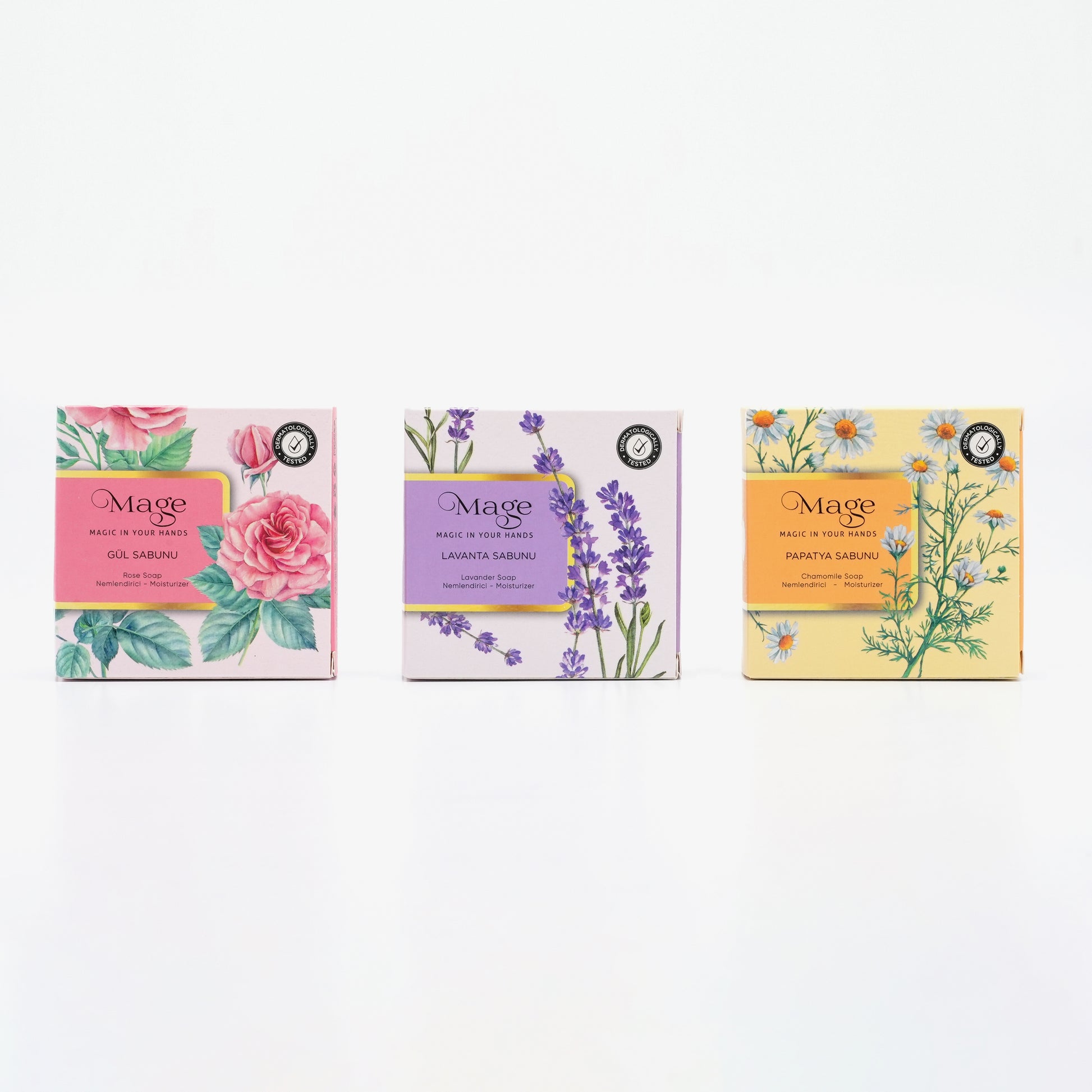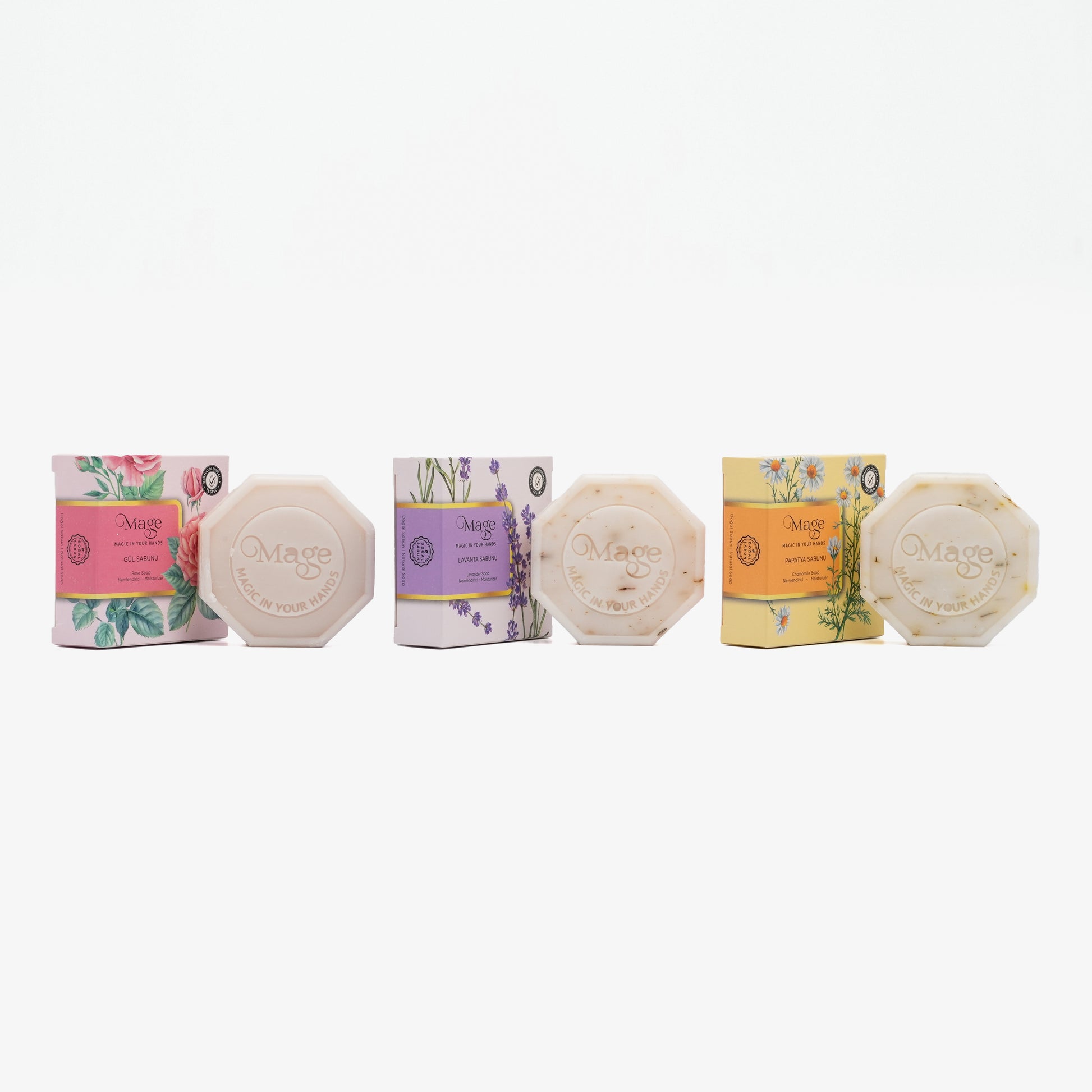 3' lü DOĞAL GÜZELLİK SABUN SETİ "Gül - Lavanta - Papatya"